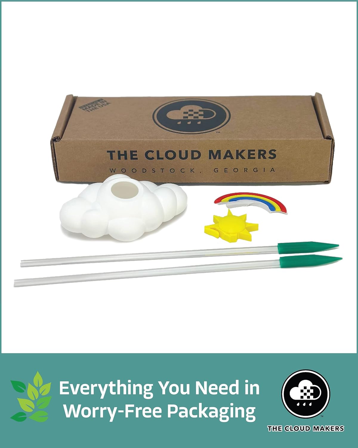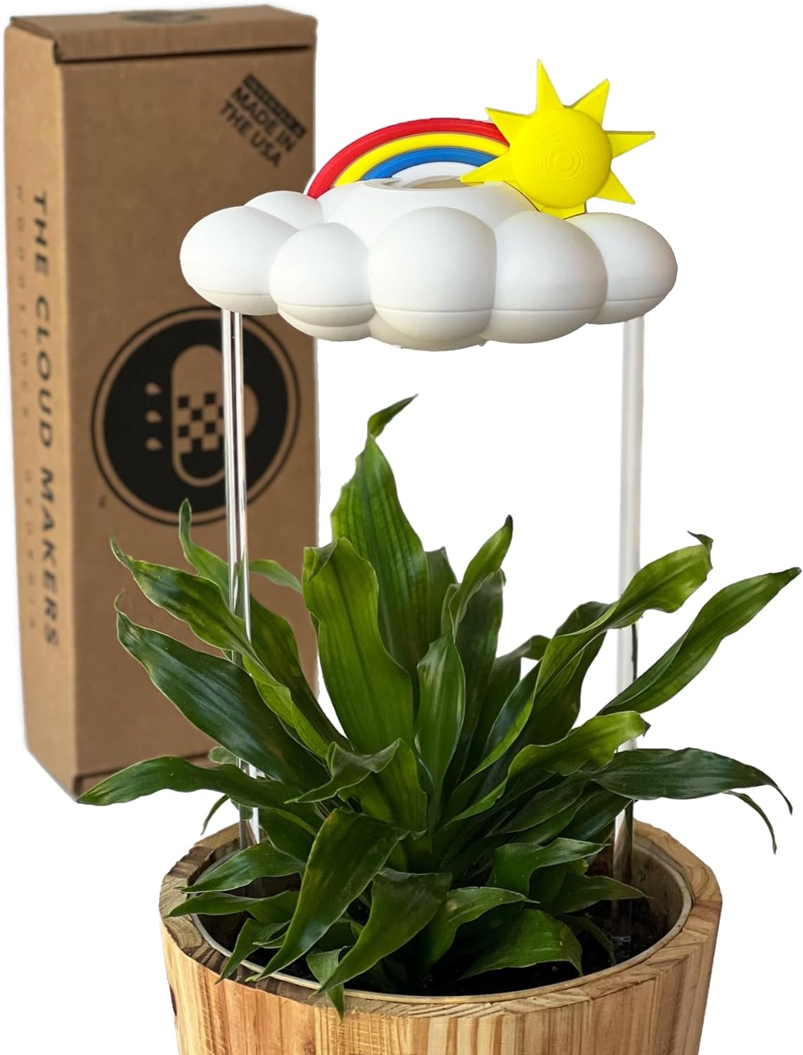 Your purchase includes 1 cloud, 1 sun accessory, 1 rainbow accessory, and 2 acrylic rods to help look like it is floating over your plant and not detract from the foliage.