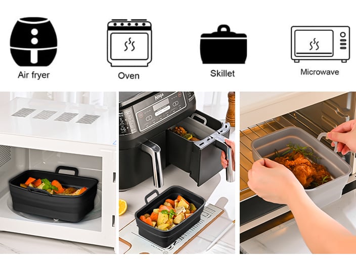Our Air Fryer Silicone Bowls are not only suitable for air fryers, but also for ovens, microwaves, freezers and dishwashers