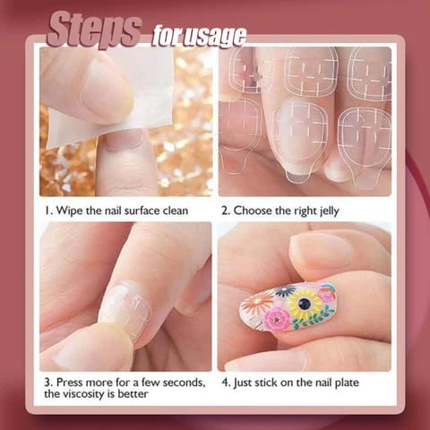 In order to extend the service life of the nail patch and save your cost, each package includes professional jelly glue (24PCS), and you can also purchase it. Simply remove the jelly glue remaining on the nails and you can use the nail patch again.