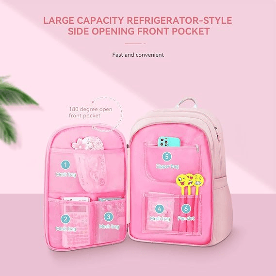 Multiple Functional Compartments: The main inner compartment of the backpack can be fully opened with a zipper, and it can be opened and closed at 180 degrees for quick retrieval, which is keeping items organized. Two elastic side pocket for water bottle.