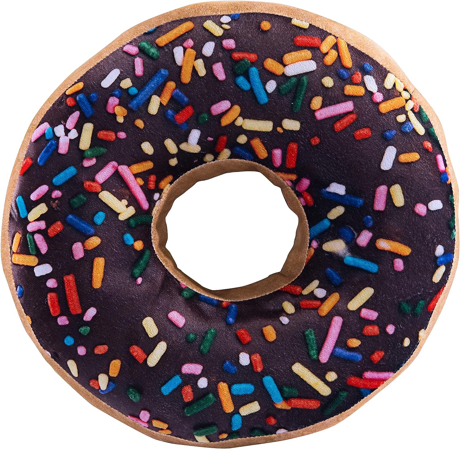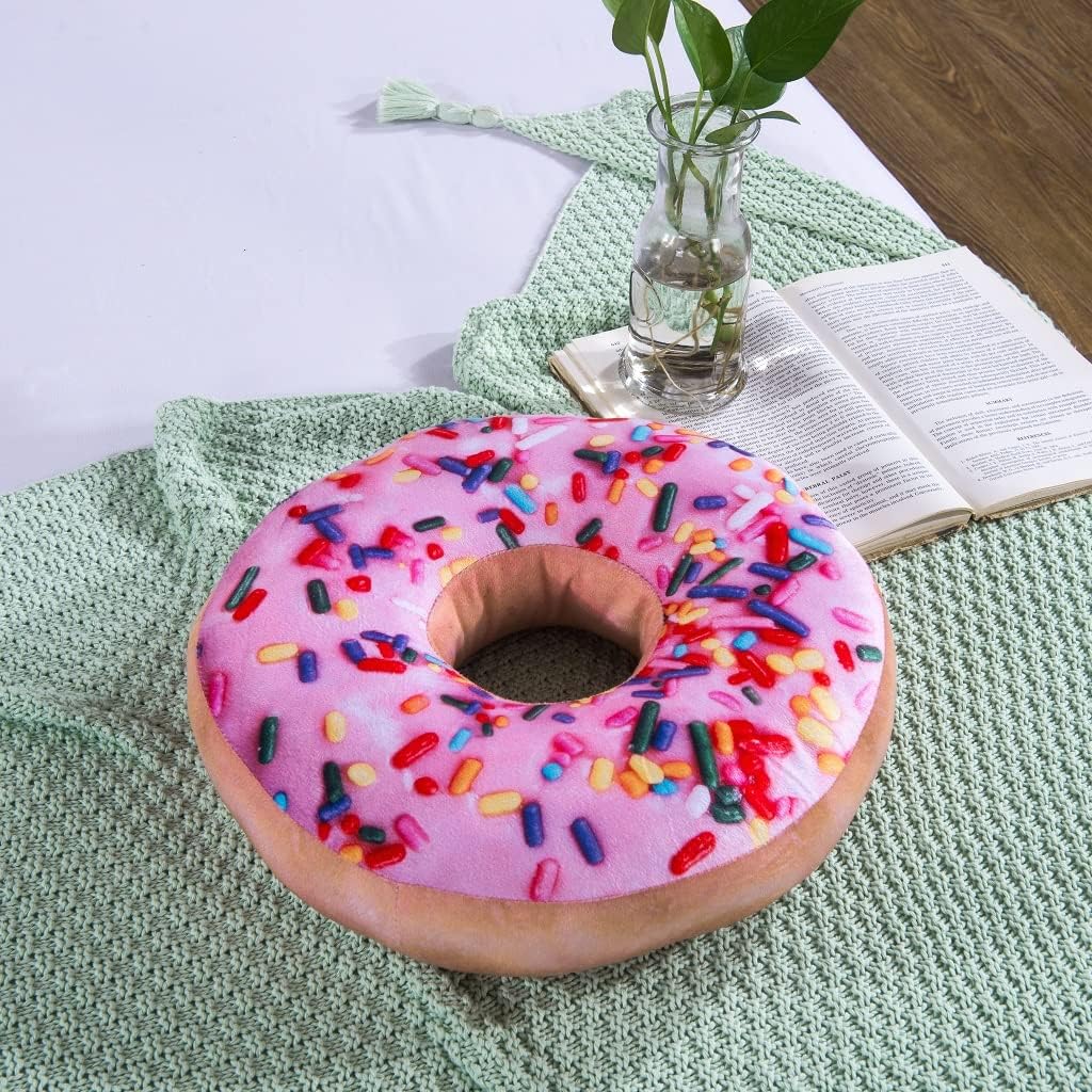 SIZE: The measurement of this decorative funny donut shaped food throw pillow is approximately 14x14x2.75inches. please note that this throw pillow have no invisible zipper, the solid stitch protect the inside sponge well and not tear easily