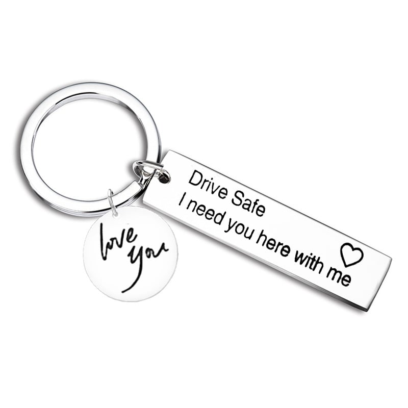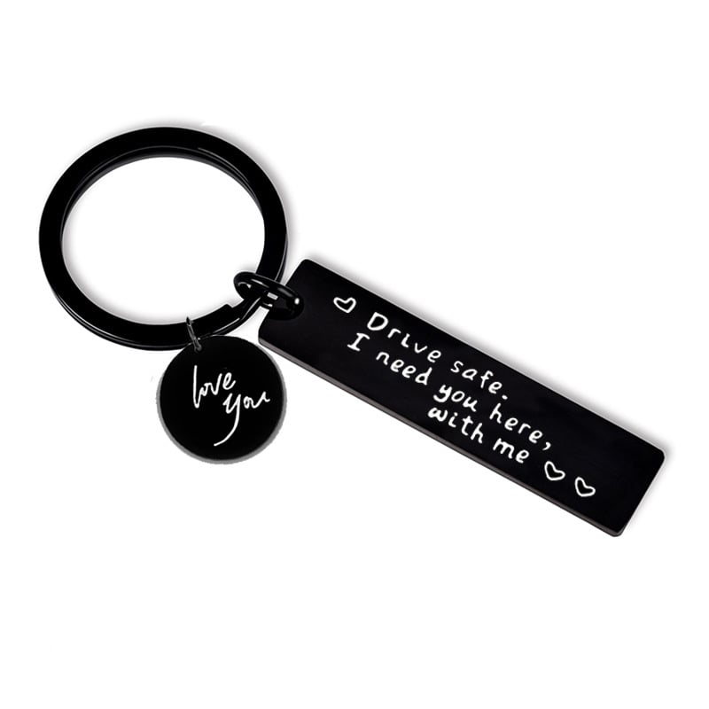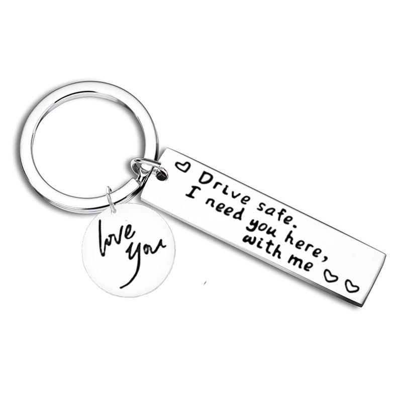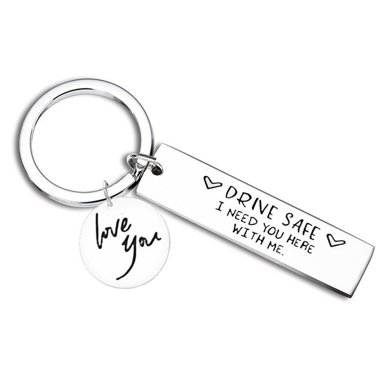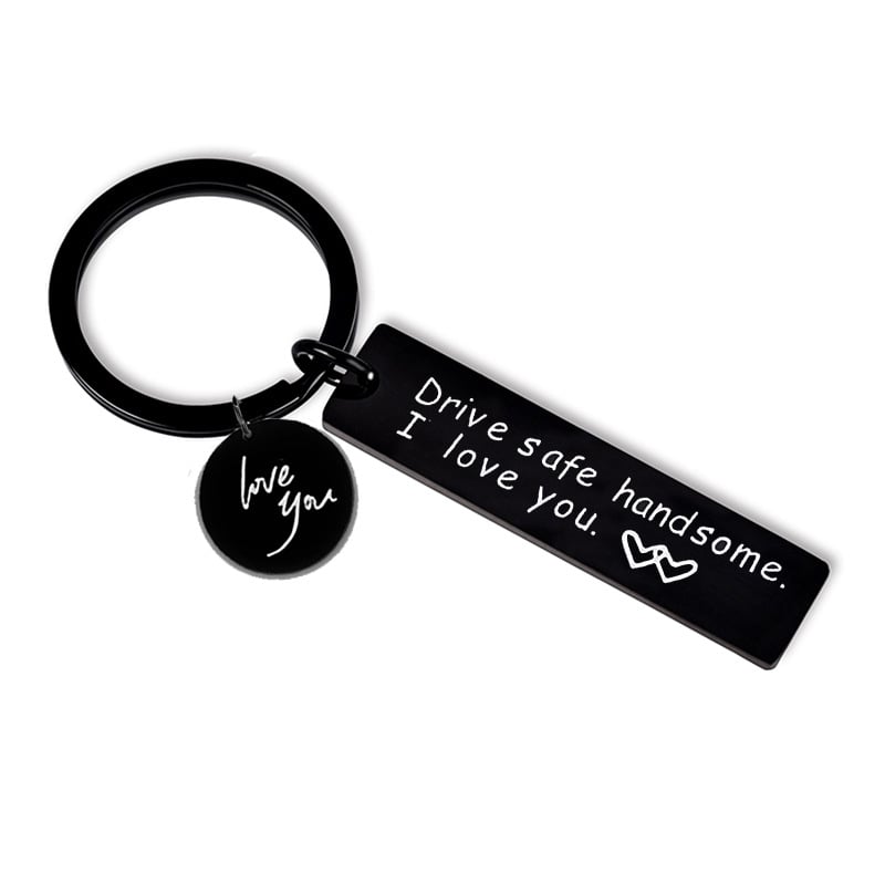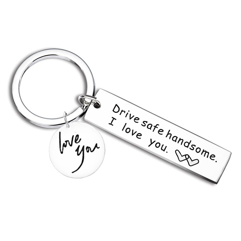How about a delicate and fun keepsake silver keyring?--“Drive safe handsome.I LOVE YOU!"