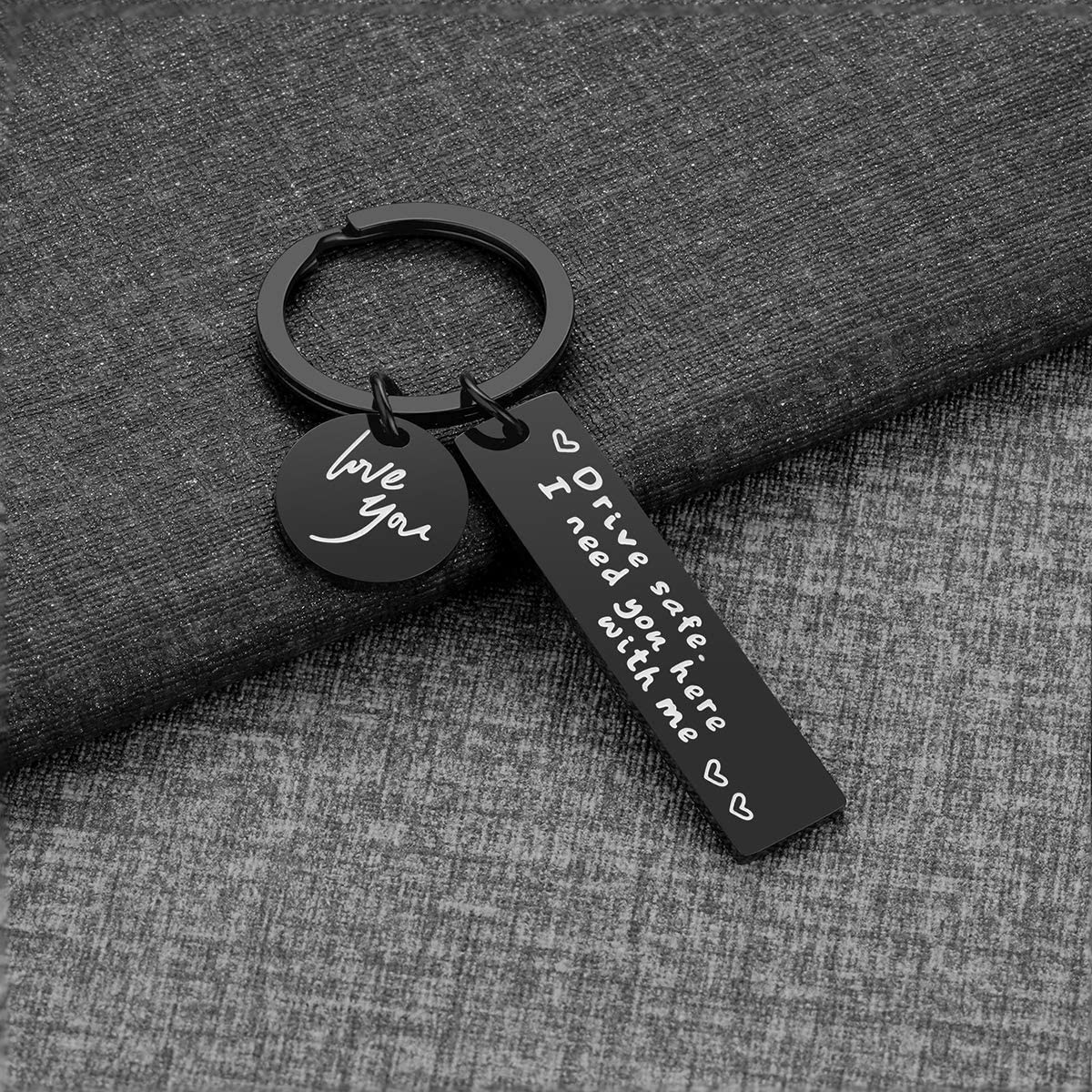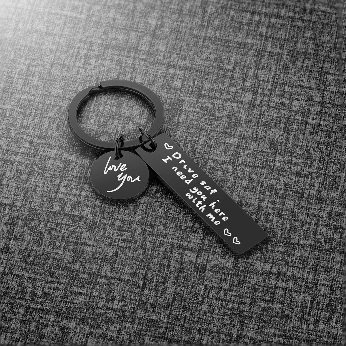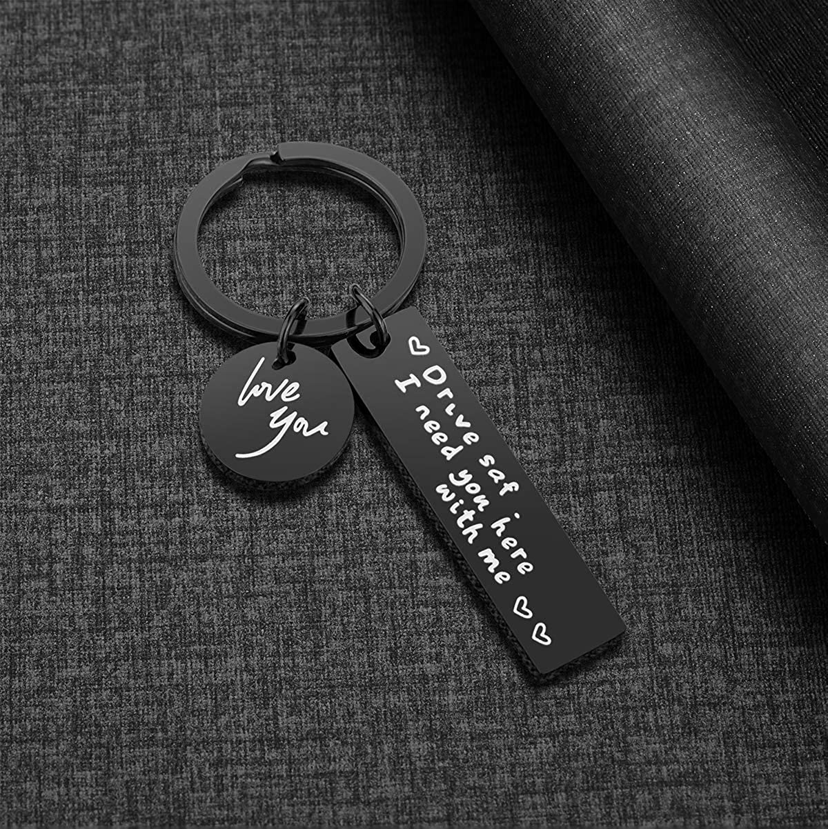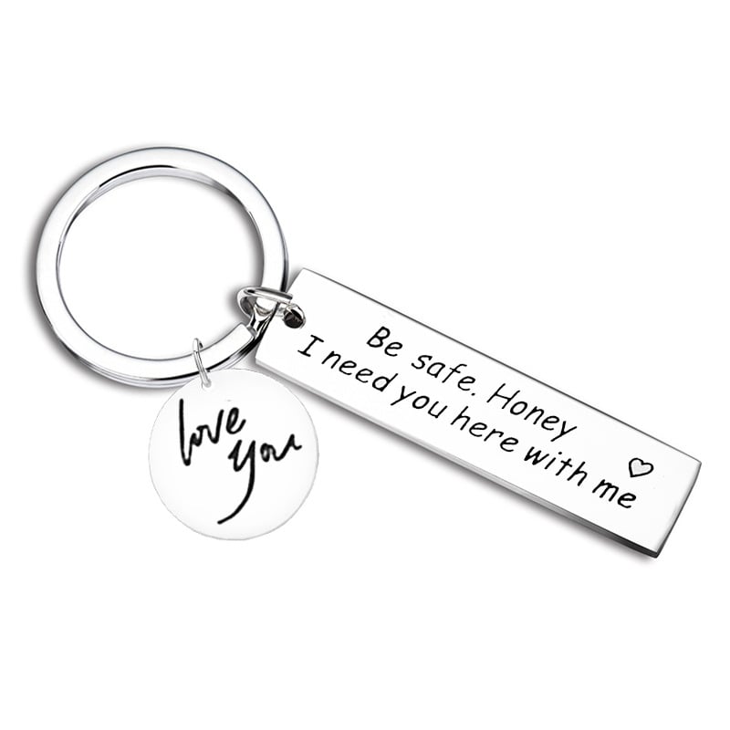 How about a delicate and fun keepsake silver keyring?--“Drive safe handsome.I LOVE YOU!"