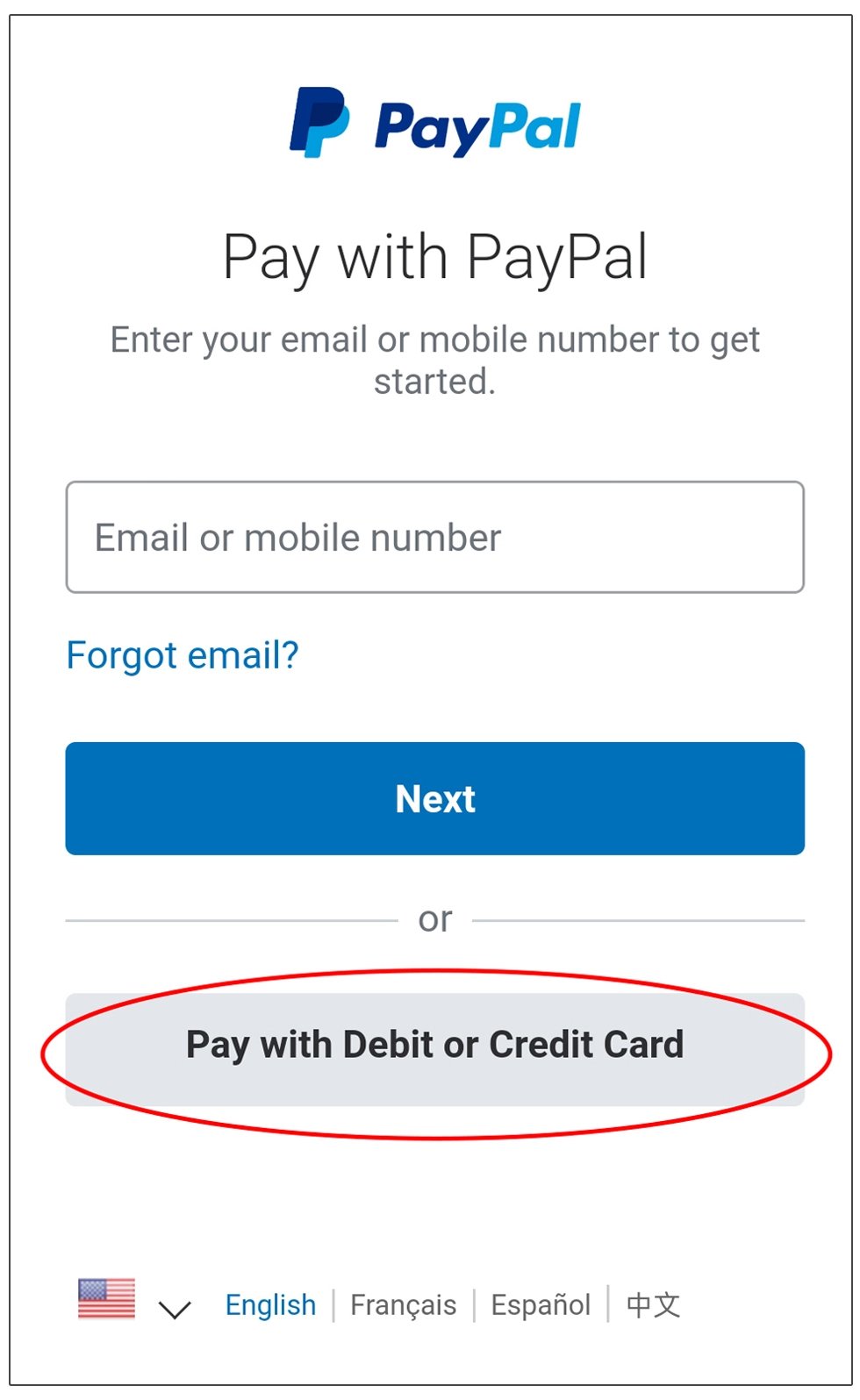 If you don't have a PayPal account, we accept all credit cards: just select 'PayPal' and click the 'Pay with Debit or Credit Card' button.