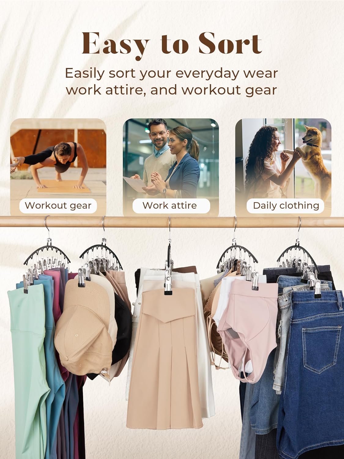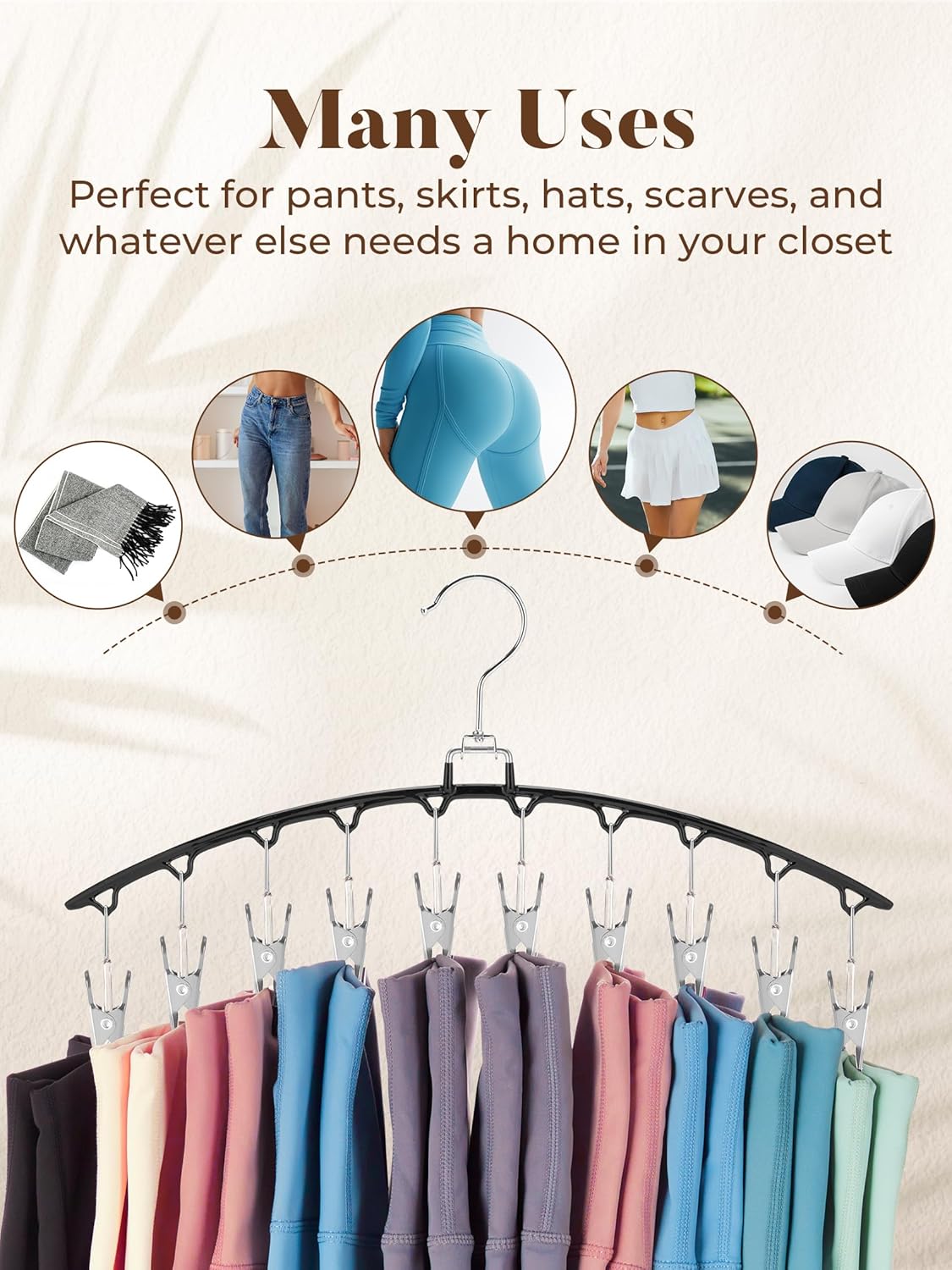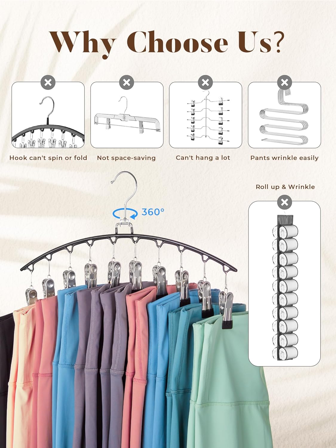 - With two premium hangers in each pack and 10 large clips per hanger, you can store up to 20 pairs of leggings per hanger! No more tangled piles or wasted space. Perfect for keeping everything organized and easily accessible.