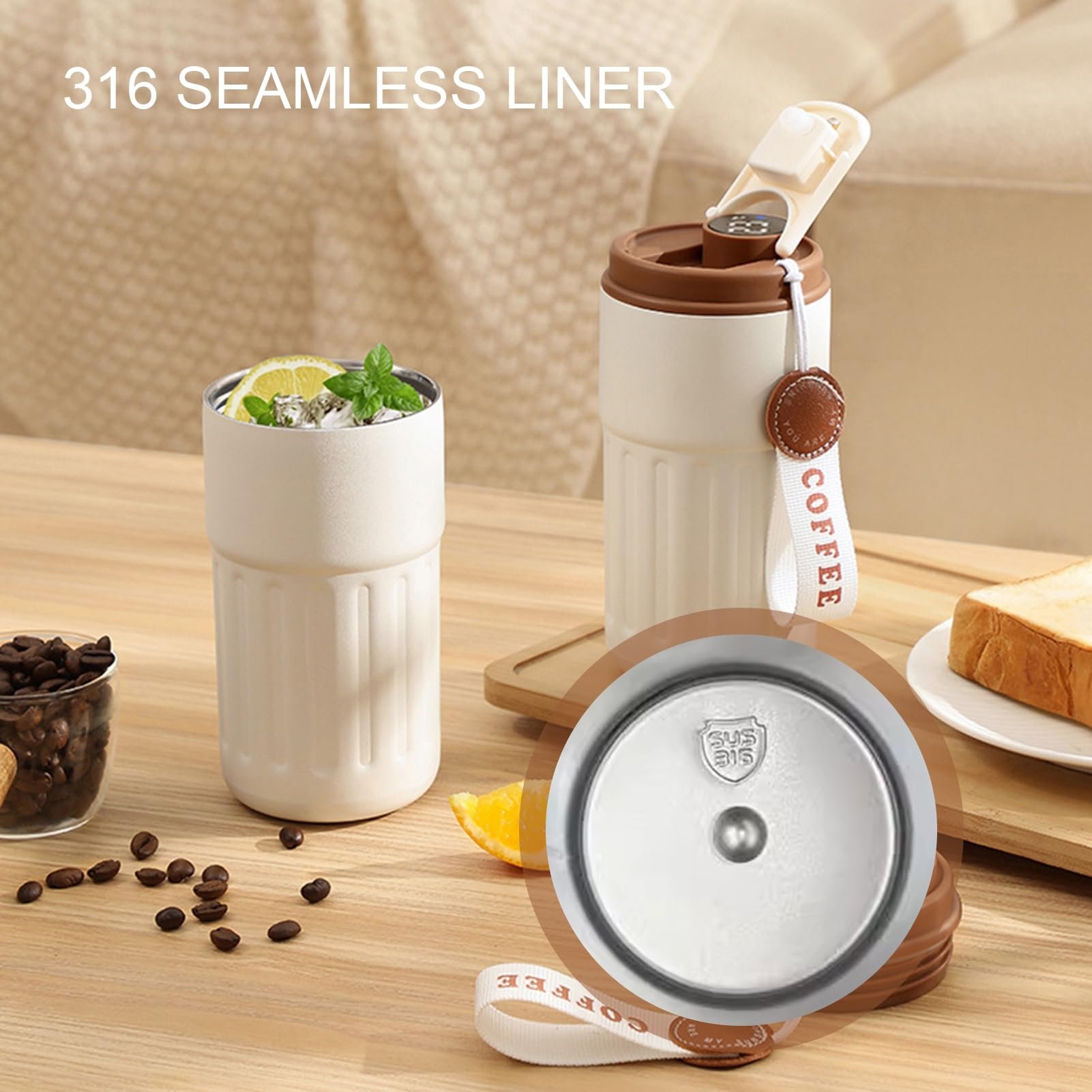 - Stainless steel insulated coffee mug,durable and reusable vacuum coffee bottle; sustainable materials 18/10 stainless steel interior; double-wall vacuum insulation keep drinks hot up to 7 hours and cold up to 12 hours. limited lifetime guarantee.