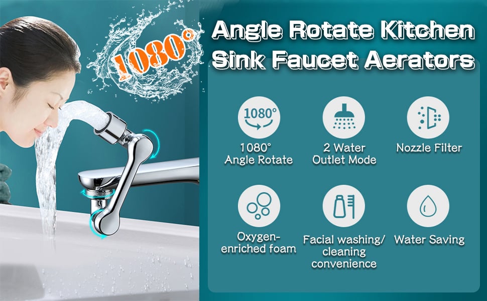 【Rotating Filter Faucet 】The splash filter faucet adds air into the water stream, making it oxygen-rich and resulting in a wider spray of water that does not splash all over and feels soothing on the skin. Unlike a standard faucet extender, the faucet sprayer attachment can rotate 1080 degrees.