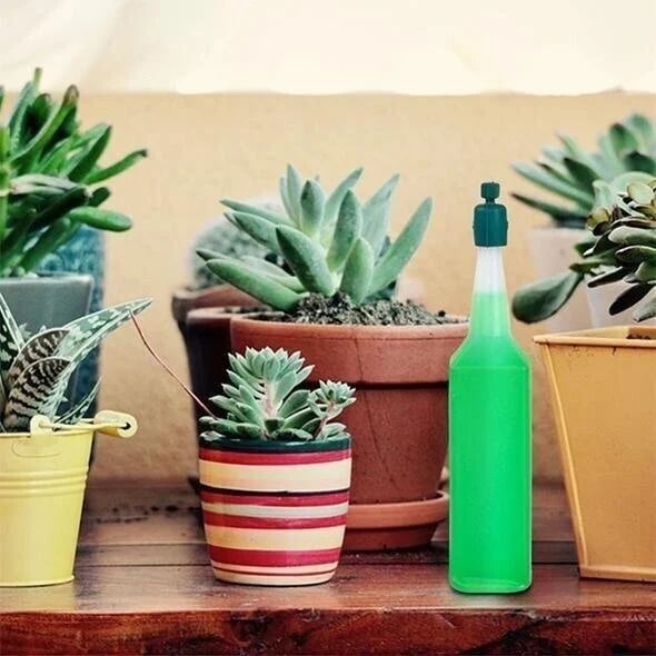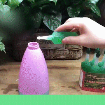Potted plants: Unscrew the cap and insert the bottle upside down into the flower pot. It will release nutrients slowly by itself.